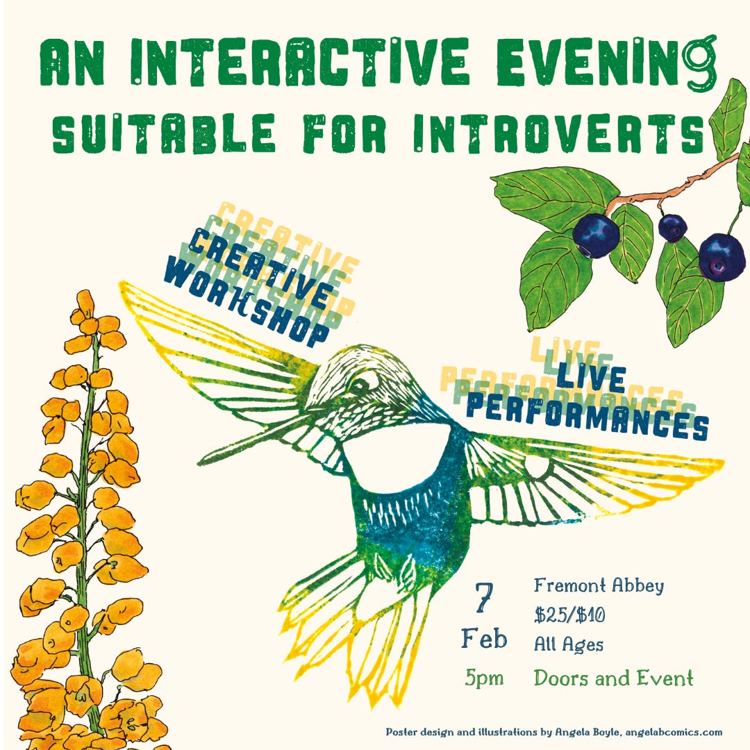 So I will not be at the above event, but I did design the poster using my own illustrations. This event is hosted by my very skilled cousin Allison Presinger. If you are in the Greater Seattle Area, keep an eye out. These are really fun events.