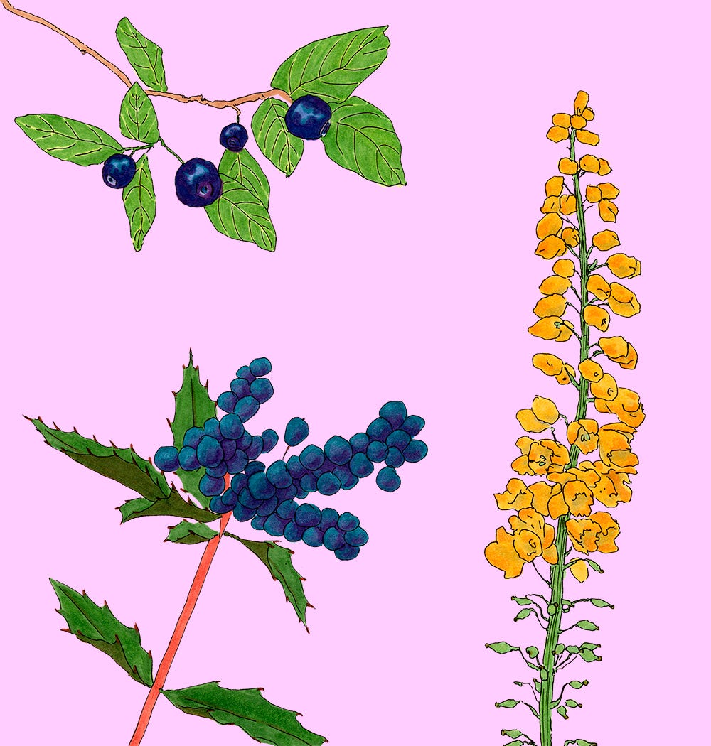 Literally. I couldn’t find the stamp to recreate the print. But I did find the original printing, and it is precisely what I wanted. So scanned it, cleaned it up, and made it work. The other crazily appropriate illustrations are pen and ink with Copic marker originally made for a Sue C. Boynton Poetry Contest winner’s broadside.