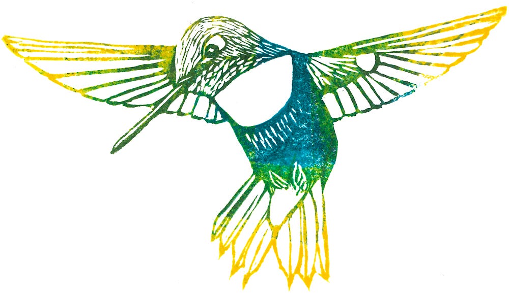 I was so desperate to find that dang hummingbird (it was haunting my dreams) that I tried to replicate it in Adobe Illustrator so I would have a vector version. But I never quite got it to a point I liked.